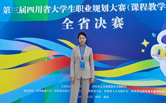 11月26日-28日,由四川省教育厅、四川省人力资源和社会保障厅联合举办的第三届四川省大学生职业规划大赛(课程教学赛道)全省决赛在南充举行,我校英语语言文化与翻译学院教师詹雪兰以优异表现斩获高教组银奖。本次决赛面向教师群体进行,分为高教组、职教组2个组别,每组各有30名优秀选手参赛。现场,在课程建设汇报、现场教学展示、...
